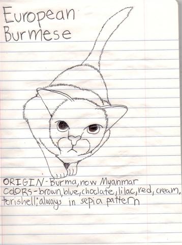 Katia made this sketch of a European Burmese cat for her notebook. She used a picture of a real cat as the model. Can you see the similarities and differences?