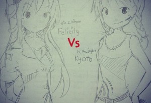 So I am going to be entering my first comic fight this Friday! It's like a fight, but you draw each panel! I'm so excited. My opponent is @wile_z_kitsune 's OC Felicity. I chose human Kyoto to battle her. She's such a better artist than me but is she as clever? Hehehe. Wish me luck!