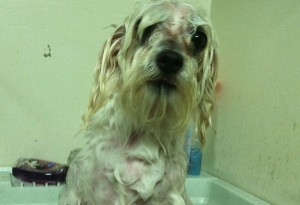 I feel the need to post something but I don't have any good art to show so here's a picture of my dog when I gave him a bath the other day.