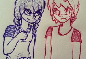 Bro and sis :) I don't think I've posted a pic of Bangarang's human form, so yeah. He has lighting bolt bangs :)))