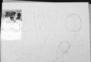 I found a way around my parental figures wrath so hA This is a project I'm working in art. We're studying pop art and I picked this piece from Lichtenstein to enlarge. I just finished the outlining, tomorrow I'll erase the grid and start inking :))))