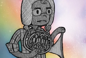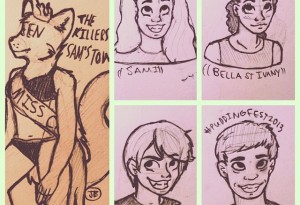 Tonight was actually a very successful art night, although there are still a lot of thing I need to improve on like noses ((Sami)) and eyes((Emerson)). All four of those people are from my drum line. And Battery Queen to the left of course