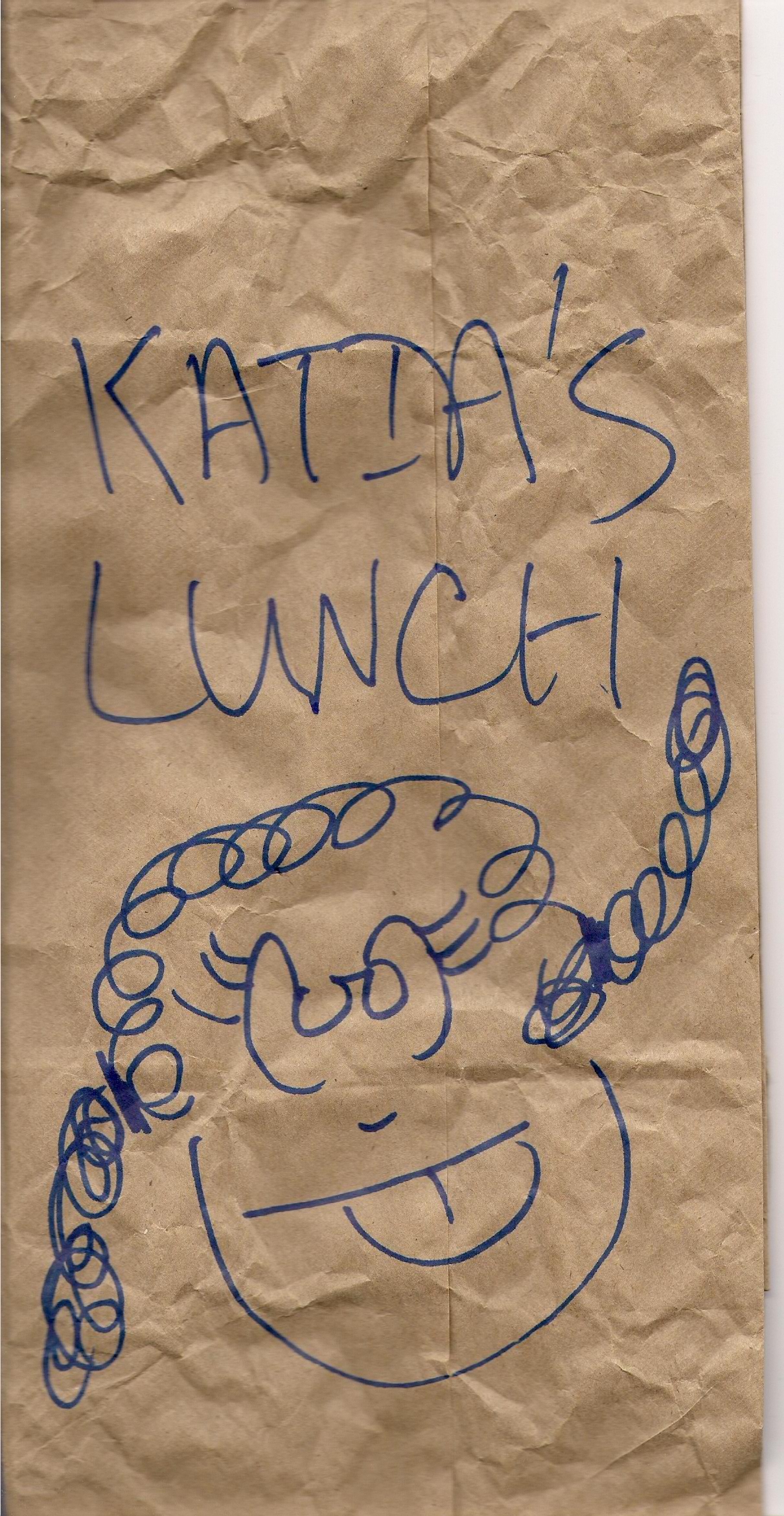 Plain and simple. Just a big Katia smiley face with her signature pony tails. One is almost always going in the opposite direction of the other.